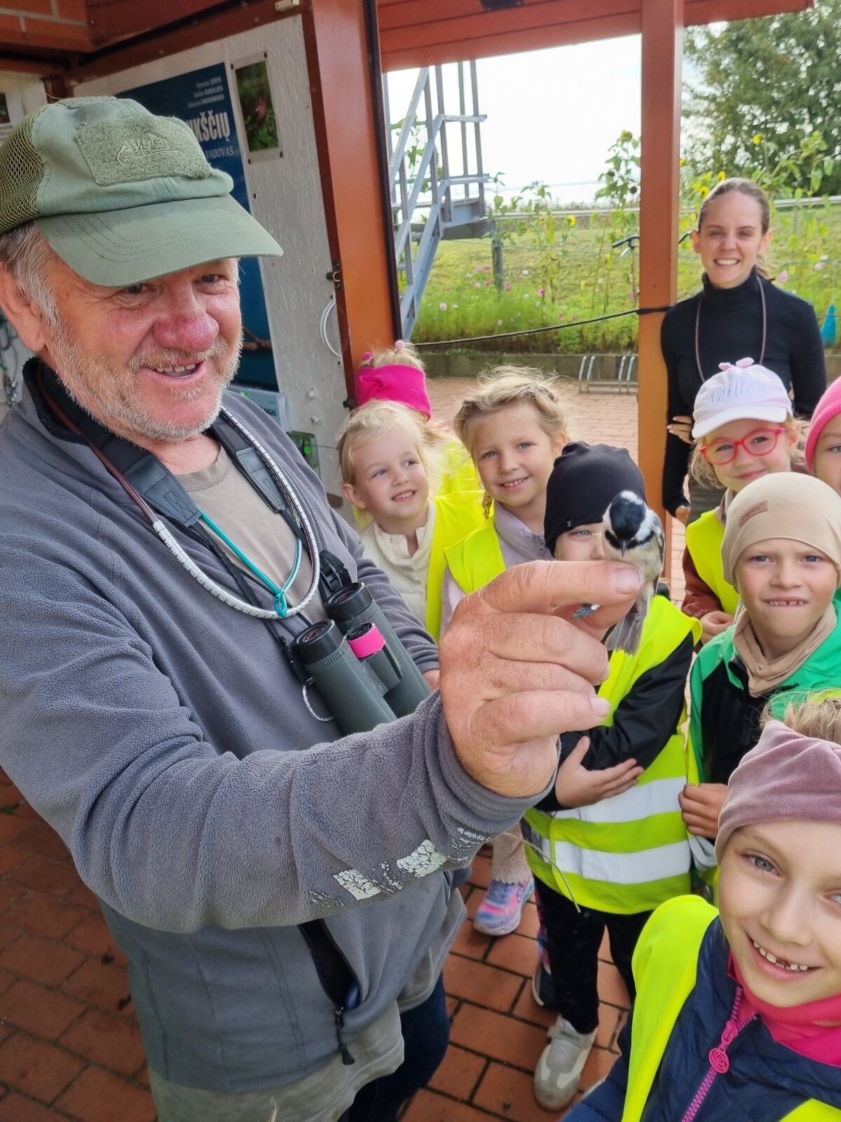 Rugsėjo 12 dieną Ventės ornitologinėje stotyje mus pasitiko edukatorė, kuri supažindino su paukščių migracijos ypatumais, paaiškino kaip specialiuose tinkluose saugiai pagaunami paukščiai žiedavimui. Ornitologas Vytautas, kuris jau sužiedavęs milijoną paukščių, suteikė vaikams unikalią galimybę stebėti kaip žieduojami paukščiukai ir leido juos paglostyti.