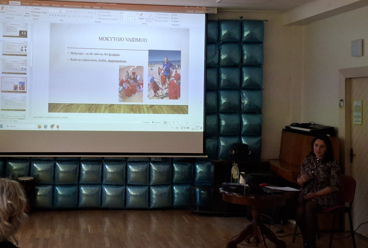 Ikimokyklinio ugdymo mokytoja metodininkė Rita Beržinienė skaitė pranešimą „Vaik... -