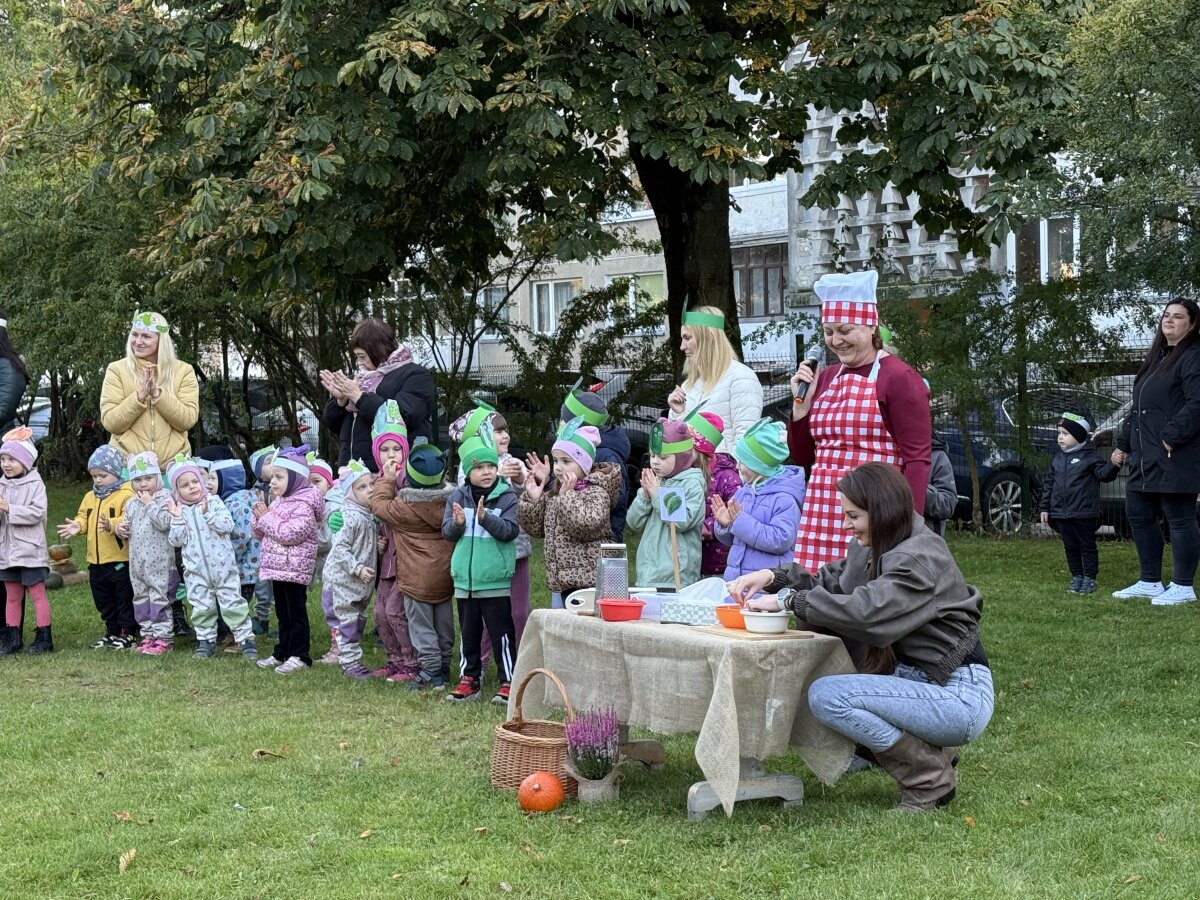 Kaip ir kasmet, spalio mėnesį mūsų įstaigoje užbaigiamas tęstinis projektas „Nykštuko sodelio rudens kraitelė“. Šiais metais vaikai rūpestingai prižiūrėjo darželyje auginamas daržoves, o tėveliai aktyviai įsitraukė į veiklas – pagyvino edukacinę lauko erdvę dekoruodami pakeliamas lysves.