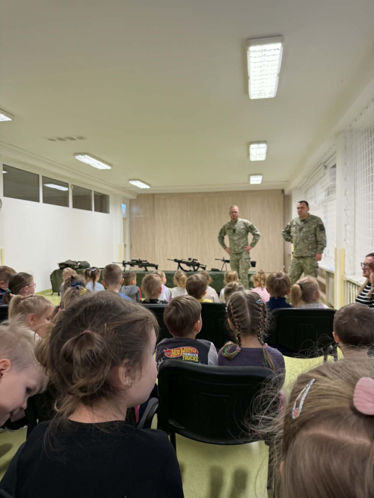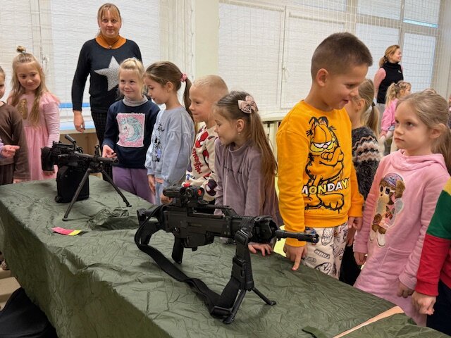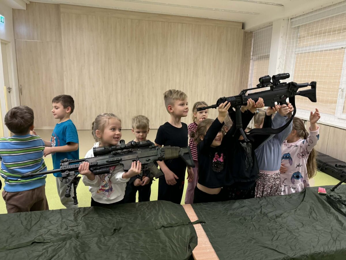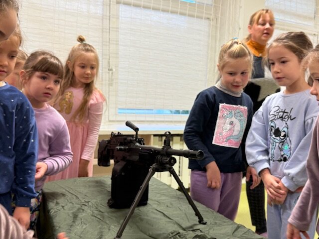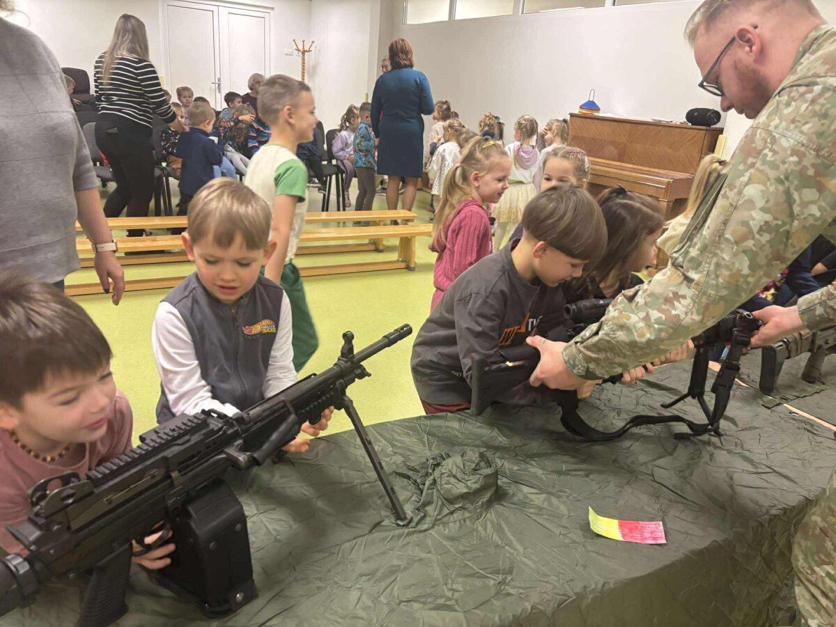 Lapkričio 18 d. Klaipėdos vaikų lopšelyje-darželyje ,,Nykštukas‘‘ lankėsi „Pingvinukų“ grupės ugdytinio tėvelis, karys - savanoris su kolega. Tėvelis, kuris tarnauja Krašto apsaugos savanorių pajėgų, Klaipėdos Žemaičių apygardos 3-ioje rinktinėje, papasakojo vaikams apie savo kario savanorio veiklą. Kariai atsivežė ir pademonstravo turimus ginklus, vaikai galėjo juos iš arti apžiūrėti, pakilnoti bei pažvelgti pro optinį taikiklį. Ugytiniai noriai matavosi kario šalmą bei neperšaunamą liemenę.